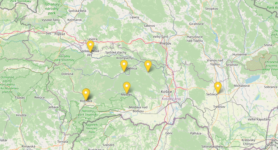 sa nachádzajú mimo mesta Košice,