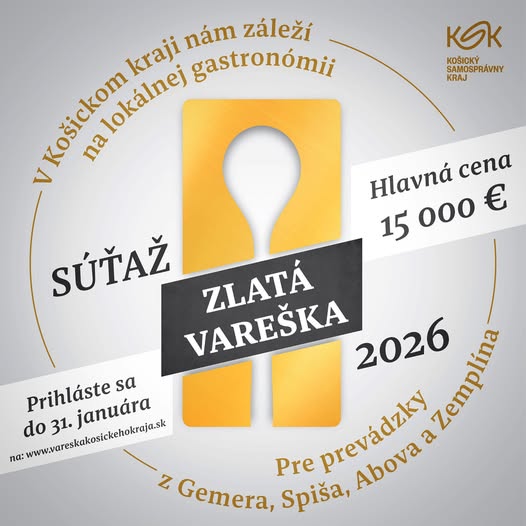 Košický samosprávny kraj pokračuje v podpore regionálnej gastronómie a po úspešnom prvom ročníku opäť otvára prestížnu súťaž Zlatá vareška Košického kraja. Druhý ročník nadväzuje na ambíciu zviditeľniť kvalitné gastroprevádzky mimo mesta Košice a podporiť kulinársku rozmanitosť regiónov Gemer, Spiš, Abov a Zemplín.